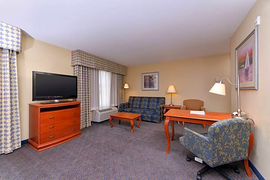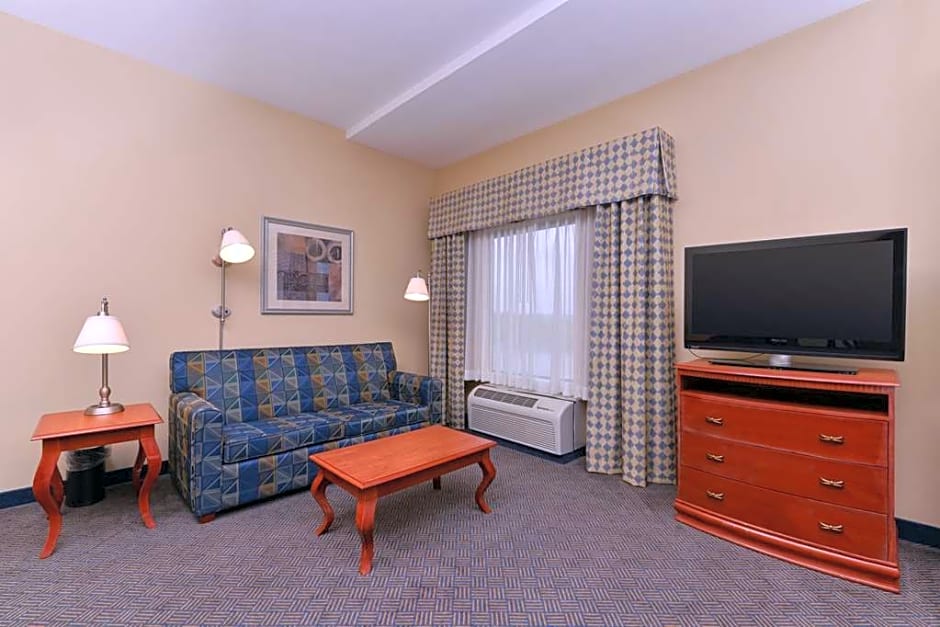 Any corresponding photo may not reflect the specific accessible room type or room feature. This hearing accessible, nonsmoking one room studio suite features one king sized bed(s). The room also has a visual alarm and notification devices for the doorbell or door knock and incoming phone calls. The room features our luxurious Clean and Fresh Hampton Bed, comfortable sofa bed, a whirlpool tub, a HDTV, and easy to operate alarm clock/radio. In the bath you will enjoy a WaterPik shower head and curved shower rod. The free high speed internet access will help you stay connected while on the road. If you prefer not to work at the desk, you can use the convenient lap desk instead. You'll also enjoy the convenience of having a coffee maker with tea service and iron/ironing board in your room.